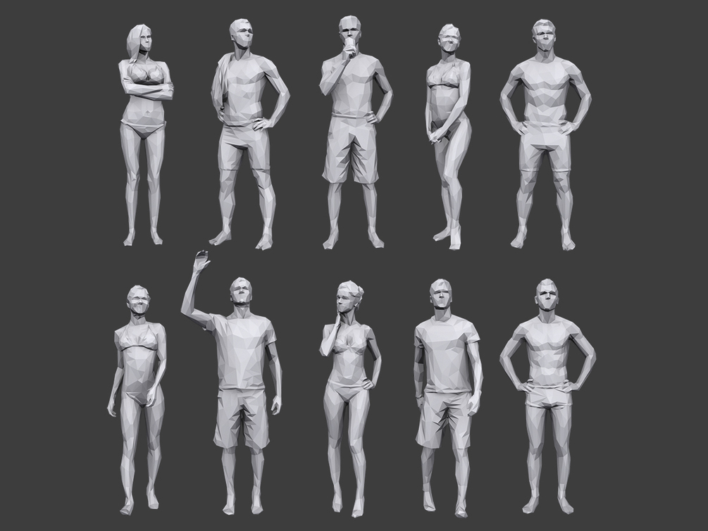 Lowpoly People Vacation Pack contains 10 lowpoly stylized casual 3D human models. 1200-1500 polygons per model.
