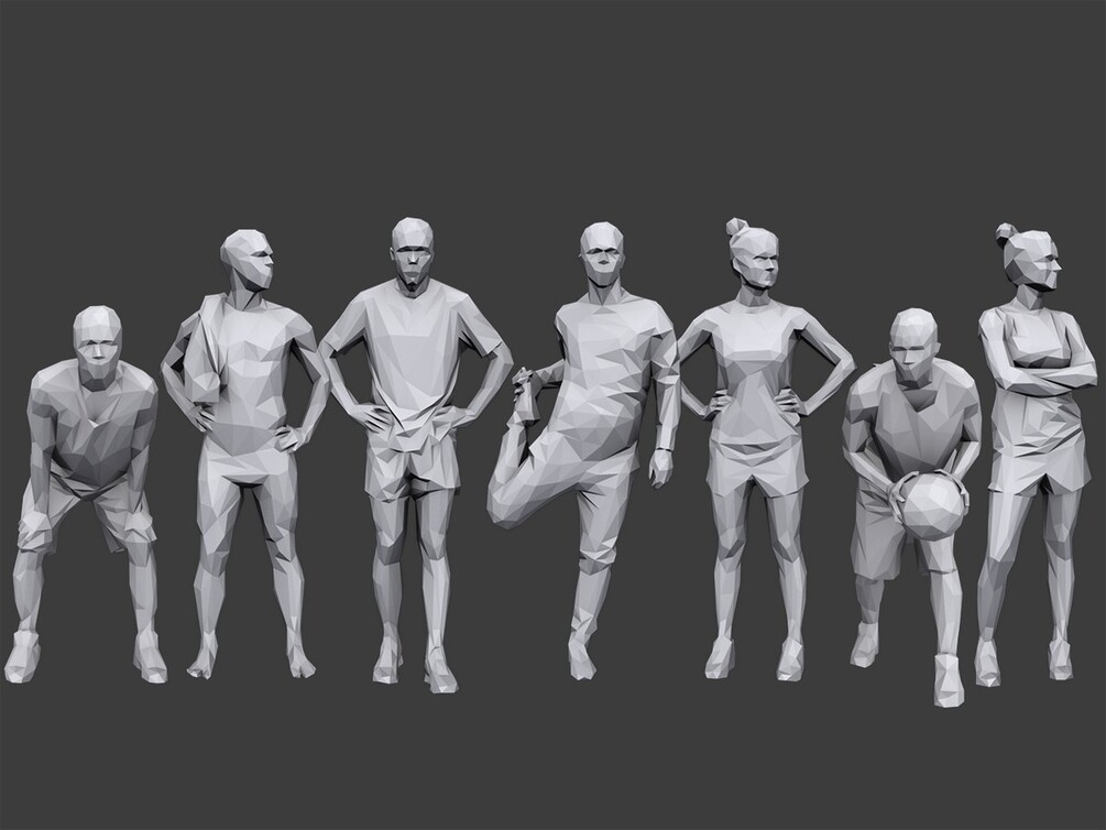 Lowpoly People Sports Pack contains 7 lowpoly stylized TYPE 3D human models. 1200-1500 polygons per model.