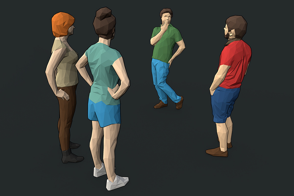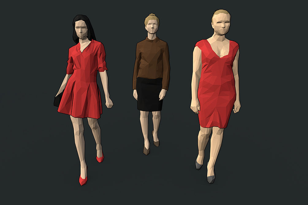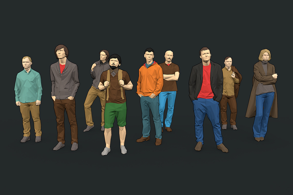 This pack contains 167 lowpoly human models, ready for CG visualization. 1200-1600 polygons per model. Ready for architectural visualization, Unity3d and other graphical projects.